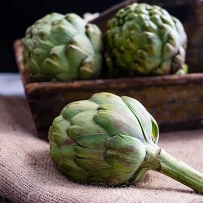 Den Stiel der Artischocke abbrechen und den Kopf für ungefähr 20 Min. kochen. Sobald am Stielansatz ein Blatt leicht abgezupft werden kann, ist die Artischocke gar.