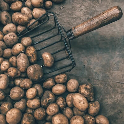 Kartoffeln, Zwiebeln und Knoblauch schälen und würfeln. Öl in einem großen Topf erhitzen. Die Zwiebeln und den Knoblauch darin anschwitzen. Die Kartoffeln hinzufügen und ebenfalls etwas anbraten. Wenn alles leicht Farbe genommen hat, das Tomatenmark dazu geben und alles nochmals für 2 Min. rösten.